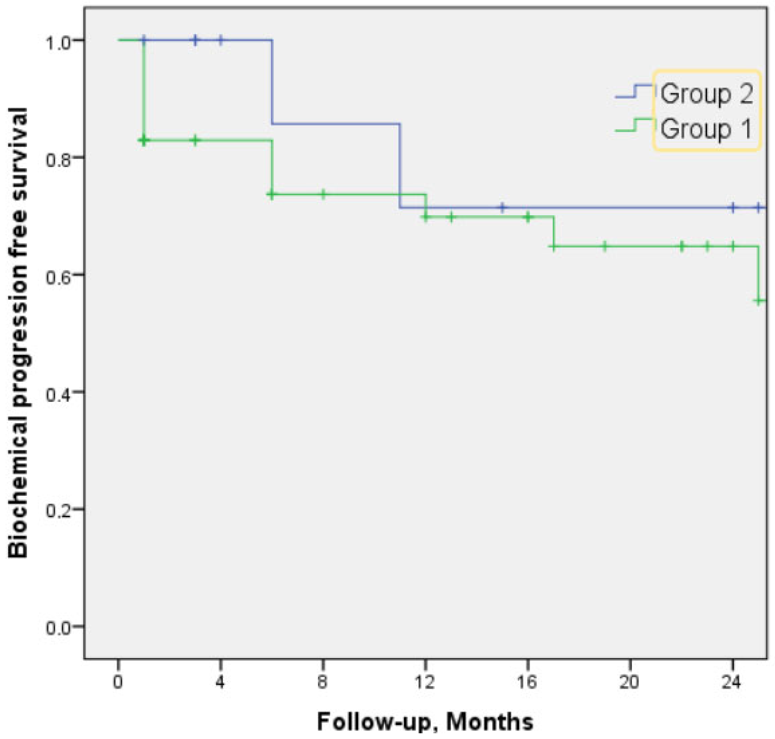 | BCR: n, (%) | 17 (32.1) | 15 (36.6) | 2 (16.7) | 0.2 |
