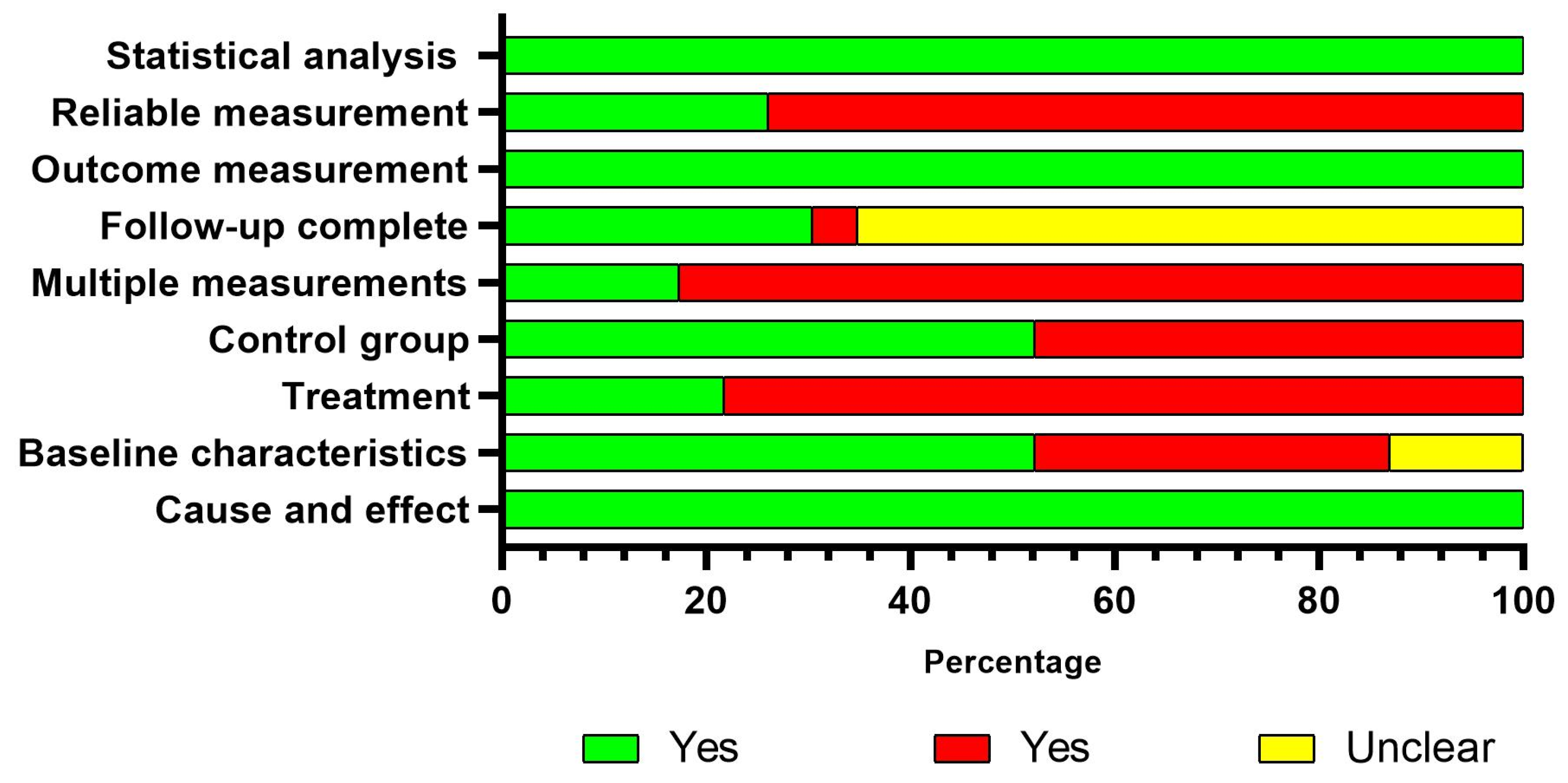 - Barker, T.H.; Stone, J.C.; Sears, K.; Klugar, M.; Leonardi-Bee, J.; Tufanaru, C.; Aromataris, E.; Munn, Z. Revising the JBI Quantitative Critical Appraisal Tools to Improve Their Applicability: An Overview of Methods and the Development Process. JBI Evid. Synth. 2023, 21, 478. [Google Scholar] [CrossRef]
