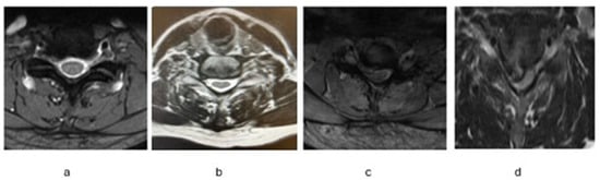 - Nakashima, H.; Yukawa, Y.; Suda, K.; Yamagata, M.; Ueta, T.; Kato, F. Abnormal findings on magnetic resonance images of the cervical spines in 1211 asymptomatic subjects. Spine 2015, 40, 392–398. [Google Scholar] [CrossRef]