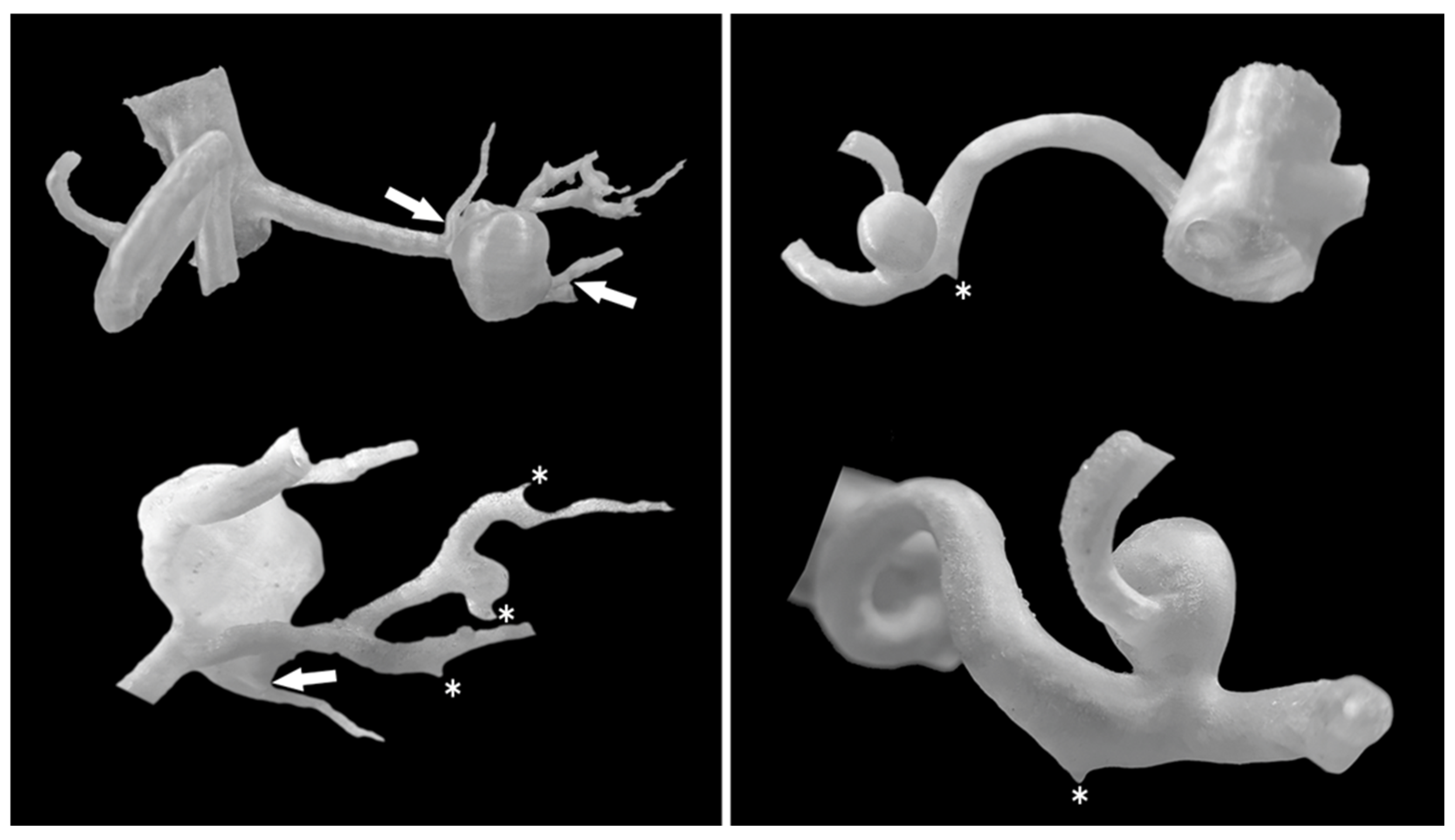 - Holzem, K.M.; Jayarajan, S.; Zayed, M.A. Surgical planning with three-dimensional printing of a complex renal artery aneurysm. J. Vasc. Surg. Cases Innov. Tech. 2018, 4, 19. [Google Scholar] [CrossRef]