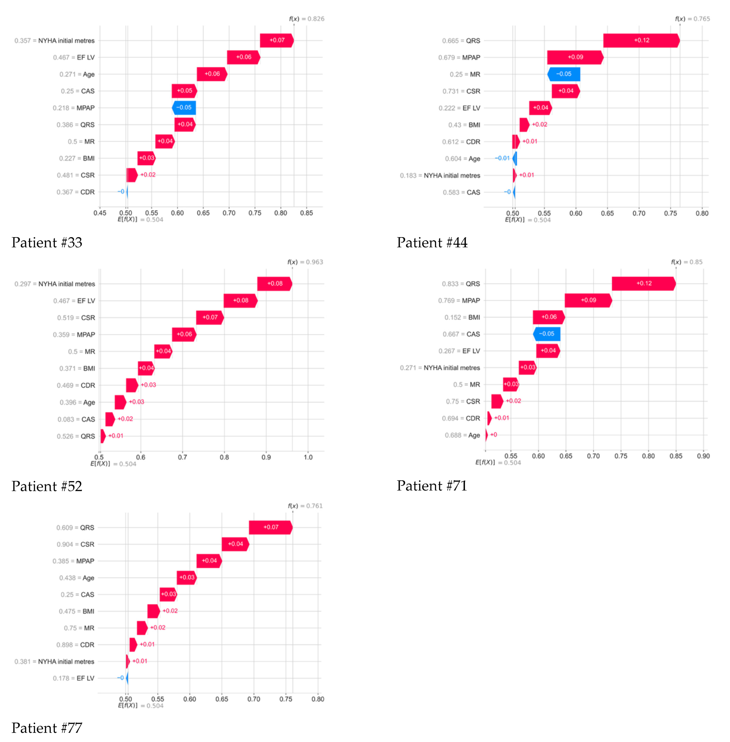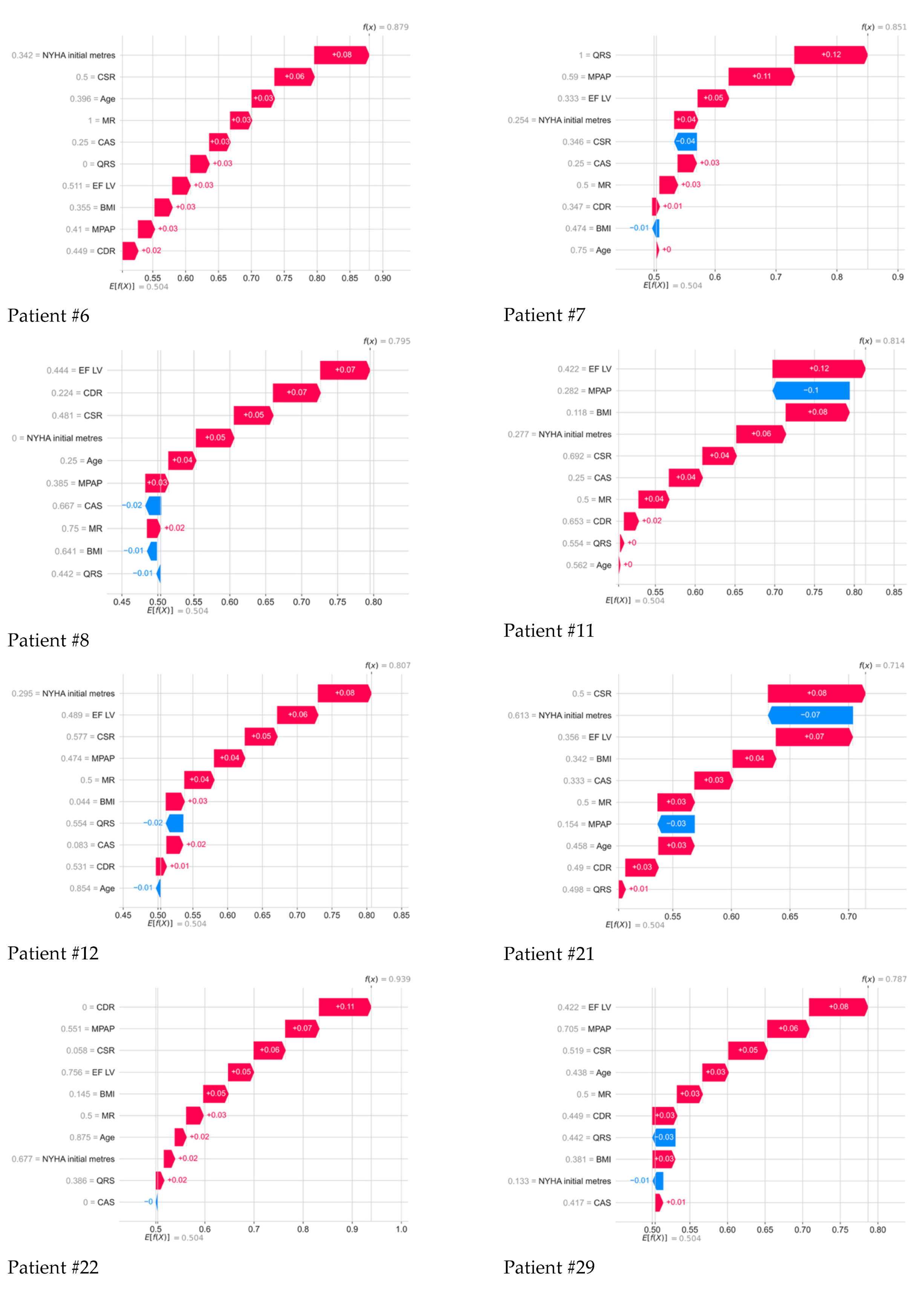 - From full data (101 real patients and 75 generated patients), 20% of a random subset was obtained (36 patients) and the probability of death was predicted.