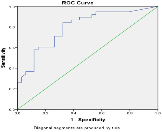 According to the ROC curve analysis, the sensitivity of TRP to predict disease activation at a ≤11,328.41 ng/mL cut-off was 72.1%, and its specificity was 62.7%. Calprotectin had a cut-off value of ≥89.60 μg/g, a sensitivity of 84.2%, and a specificity of 67.6%.