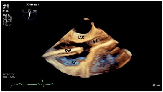 TV imaging can be challenging due to its anterior position in the chest cavity and far proximity from the TEE probe, possible acoustic shadowing from cardiac prosthetic material, device leads, interatrial septal hypertrophy, or mitral and/or aortic calcifications [34,35].