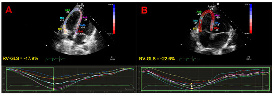 - Muraru, D.; Onciul, S.; Peluso, D.; Soriani, N.; Cucchini, U.; Aruta, P.; Romeo, G.; Cavalli, G.; Iliceto, S.; Badano, L.P. Sex- and Method-Specific Reference Values for Right Ventricular Strain by 2-Dimensional Speckle-Tracking Echocardiography. Circ. Cardiovasc. Imaging 2016, 9, e003866. [Google Scholar] [CrossRef]