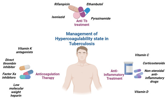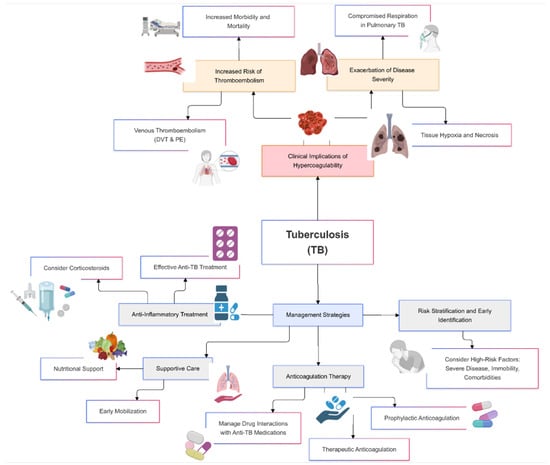 Understanding these alterations is essential for managing thrombotic risks in TB patients. Effective TB treatment, along with appropriate anticoagulation and anti-inflammatory strategies, can help mitigate these risks. Targeting the underlying inflammation and balancing pro-coagulant and anticoagulant factors are essential components of managing the hypercoagulable state associated with TB [19,37].