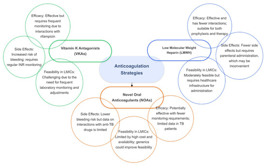 While NOAs present a promising alternative to VKAs for TB patients with VTE, the lack of robust clinical data necessitates further research to establish their safety and efficacy. LMWH remains a potential option despite challenges related to its administration. Effective management of anticoagulation therapy in TB patients requires careful consideration of drug interactions, close monitoring of anticoagulation status, and individualized risk assessments. Addressing these gaps in research and optimizing anticoagulation strategies are essential for improving outcomes in TB patients with thromboembolic complications [67].