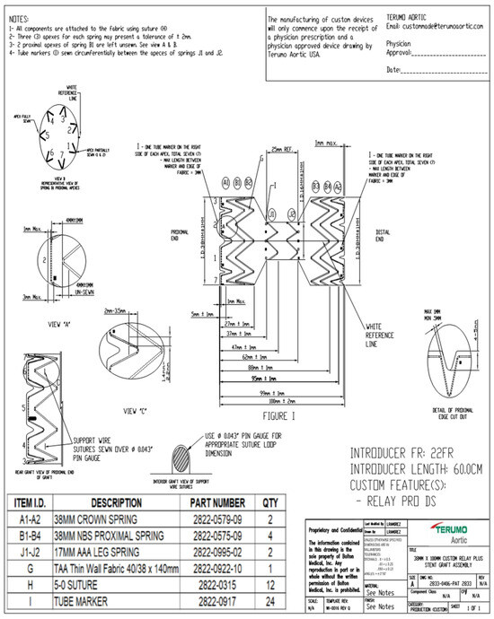 - Beyrouti, H.E.; Lescan, M.; Doemland, M.; Mustafi, M.; Jungmann, F.; Jorg, T.; Halloum, N.; Dorweiler, B. Early results of a low-profile stent-graft for thoracic endovascular aortic repair. PLoS ONE 2020, 15, e0240560. [Google Scholar] [CrossRef] [PubMed]