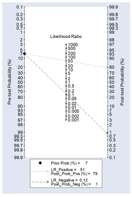 - Fagan, T.J. Letter: Nomogram for Bayes theorem. N. Engl. J. Med. 1975, 293, 257. [Google Scholar] [CrossRef]