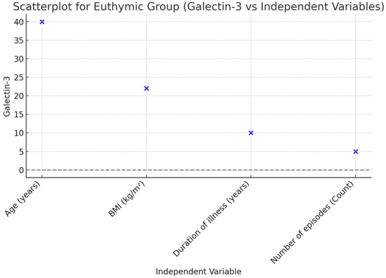Scatterplot illustrating the relationship between Galectin-3 and independent variables in the Euthymic Group.