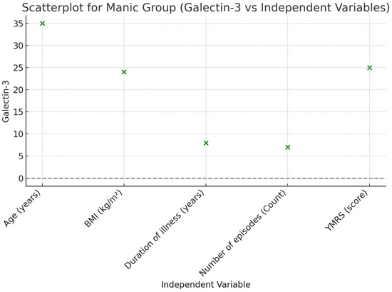 Scatterplot illustrating the relationship between Galectin-3 and independent variables in the Manic Group.