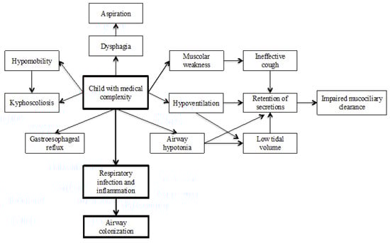 Main factors contributing to respiratory infections and airway colonization of children with medical complexities (CMC).