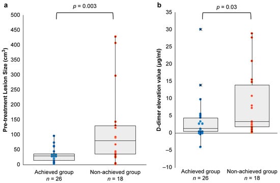 Chicago/Turabian StyleNomura, Tadashi, Mine Ozaki, Keigo Osuga, Masakazu Kurita, Ayato Hayashi, Shunsuke Yuzuriha, Noriko Aramaki-Hattori, Makoto Hikosaka, Taiki Nozaki, Michio Ozeki, and et al. 2025. "Post-Hoc Analysis of a Multicenter Clinical Trial: Correlation of Coagulation Factor Changes and MRI-Defined Treatment Outcomes After Sclerotherapy for Venous Malformations" Journal of Clinical Medicine 14, no. 3: 905. https://doi.org/10.3390/jcm14030905