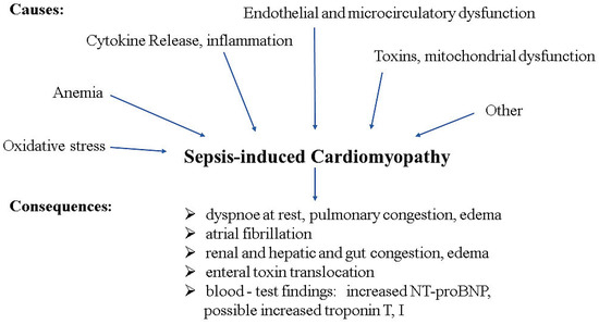- L’Heureux, M.; Sternberg, M.; Brath, L.; Turlington, J.; Kashiouris, M.G. Sepsis-Induced Cardiomyopathy: A Comprehensive Review. Curr. Cardiol. Rep. 2020, 22, 35. [Google Scholar] [CrossRef]