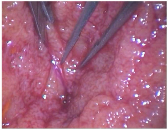 In the testes selected for M-TESE, through the operating microscope, a direct examination of the testicular parenchyma was performed under magnification (20–25×) (Figure 1). The surgeon searched for the more dilated, more opaque, and whiter seminiferous tubules, possibly located near the blood vessels. Multiple testicular specimens were excised. To explore both the superficial and deep testicular lobes, dissection was performed with microsurgical forceps, aiming to preserve the blood supply. One or more specimens were taken for histopathological examination. In cases of low-retrieval-chance NOA, characterized by a low testicular volume (<10 mL) and high FSH levels (>12.4 IU/L), the patients underwent a combined trifocal and microsurgical approach to enhance the sperm retrieval rate, as observed by Falcone et al. [6]. The tunica albuginea was then closed using an adsorbable Vicryl 4-0 continuous suture, while the tunica vaginalis was subsequently sutured with adsorbable Vicryl 3-0. After a thorough hemostasis check, the testis was repositioned in the corresponding hemiscrotum, ensuring that the spermatic cord was not twisted. The same procedure was performed on the contralateral side, where instead of the operating microscope, the surgeon used surgical loupes for magnification (3.5–5×). Absorbable sutures were applied for the dartos and skin layers. A Foley catheter was routinary placed and removed after 6 h or the next day. A non-compressive dressing was placed over the surgical wound, and ice was applied to reduce the pain.