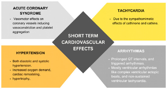 Khat contains several psychoactive compounds, including cathinone and cathine, which exert sympathomimetic effects by enhancing the release of catecholamines such as adrenaline and noradrenaline. This physiological response leads to increased heart rate, blood pressure, and myocardial oxygen demand (