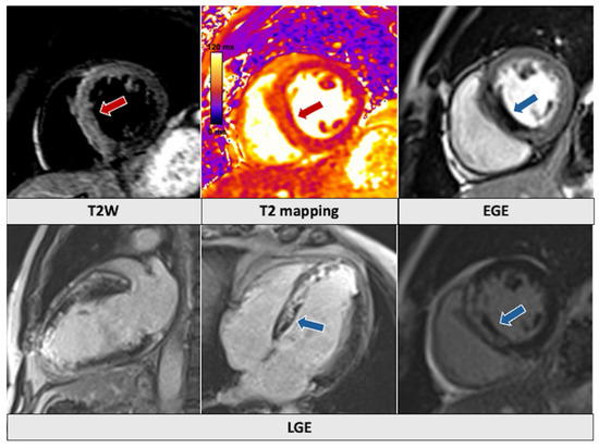 - Kim, H.W.; Farzaneh-Far, A.; Kim, R.J. Cardiovascular Magnetic Resonance in Patients With Myocardial Infarction. J. Am. Coll. Cardiol. 2009, 55, 1–16. [Google Scholar] [CrossRef]