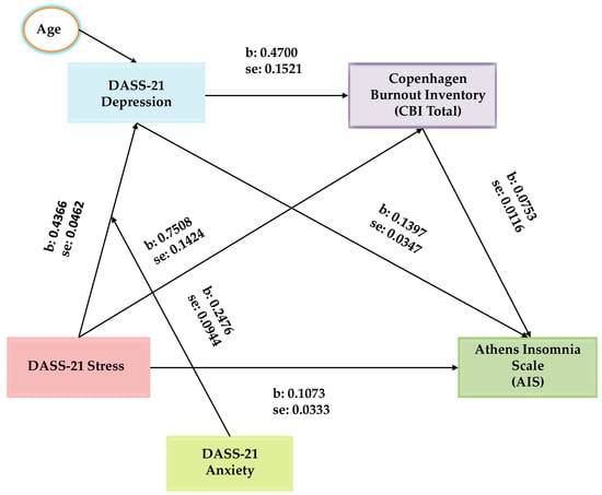 (3) DASS-21 Stress→ DASS-21 Depression → CBI →AIS0.02760.00913.0329 0.01090.0464