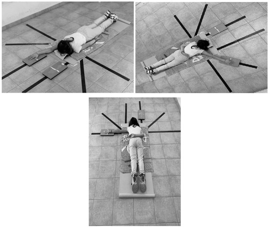 The ASH was performed based on the original description of the test by Ashworth et al. [19]. Standardized instructions were provided to participants for the testing process, which always started after two submaximal contractions, which enabled the athletes to familiarize themselves with the procedure. Five-second contractions were performed during which the maximal force was advised to be produced within the first two and maintained for three more, while recovery periods of twenty seconds were offered. Three measurements per position (I,Y,T) and limb were recorded. The K-Force plates (Kinvent, Montpellier, France) were used for the conduction of the ASH test, a device that has been proven reliable for the test itself according to the previous literature [20,21]. In order to maximize the repeatability of the measurement procedure, fixed points were marked on the plates in order for the positioning of the hand on the plate to be standardized despite the upper-limb length differences (Figure 1). We ensured this by marking the point at exactly half the distance of the plate’s length and placing on it the mid part of the palm (defined as the mid of the distance between the tip of the middle finger and the radiocarpal joint).