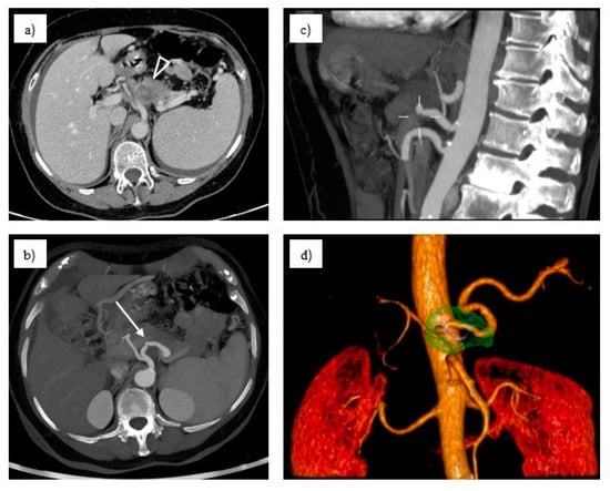 - Peters, N.A.; Javed, A.A.; Cameron, J.L.; Makary, M.A.; Hirose, K.; Pawlik, T.M.; He, J.; Wolfgang, C.L.; Weiss, M.J. Modified Appleby Procedure for Pancreatic Adenocarcinoma: Does Improved Neoadjuvant Therapy Warrant Such an Aggressive Approach? Ann. Surg. Oncol. 2016, 23, 3757–3764. [Google Scholar] [CrossRef] [PubMed]