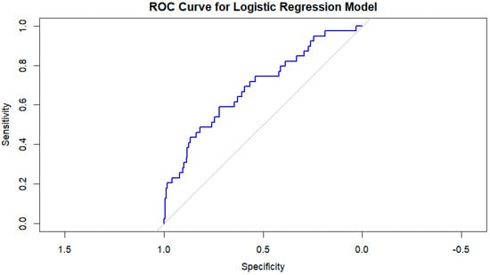 The performance of the logistic regression model was evaluated using a receiver operating characteristic (ROC) curve. The area under the curve (AUC) was 0.6934, indicating that the model has good discrimination in predicting the development of CIN (Figure 3).
