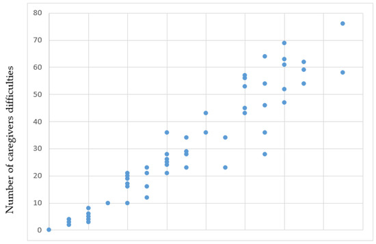 Furthermore, the number of caregiver difficulties was significantly associated with the number of ADH disorders reported by a patient (R2 = 0.883, p value < 0.001) (Figure 2).