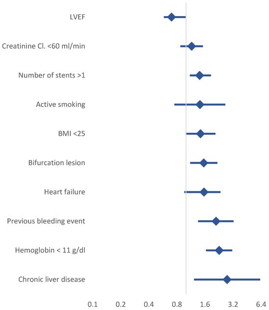 - Urban, P.; Mehran, R.; Colleran, R.; Angiolillo, D.J.; Byrne, R.A.; Capodanno, D.; Cuisset, T.; Cutlip, D.; Eerdmans, P.; Eikelboom, J.; et al. Defining High Bleeding Risk in Patients Undergoing Percutaneous Coronary Intervention. Circulation 2019, 140, 240–261. [Google Scholar] [CrossRef]