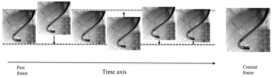 Recursive filtering is a conventional technique that reduces image noise and improves observation by combining the past fluoroscopic image with the current one [