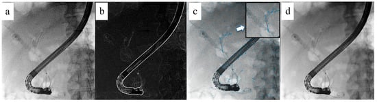 In I-EUS or pancreatic duct procedures using ERCP, the guidewire often overlaps with the vertebral body. This makes it particularly difficult to distinguish between contrast media and devices such as the guidewire, and also makes it difficult to operate the guidewire. Resolving this problem requires a fluoroscopic image that reduces the influence of vertebral bodies and improves the visibility of the guidewire. Consequently, the background attenuation processing technique was developed, which subtracts background elements such as vertebral bodies, which are similar to angiography images (