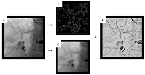 Background attenuation processing reduces background signals by detecting multidirectional line structures, classifying line structure signals and other background signals, and enhancing line structure signals. This enables the performance of fluoroscopy with improved visibility of the guidewire by blending the vertebrae into the background, even when it overlaps with the vertebral body or contrast medium. We named this technique wire-optimized weighted processing (WOW) because it enhances the visibility of the wire, even when overlapping with the vertebrae.