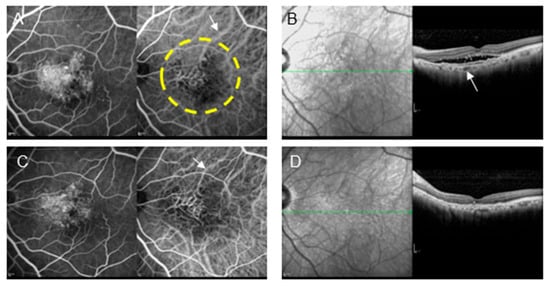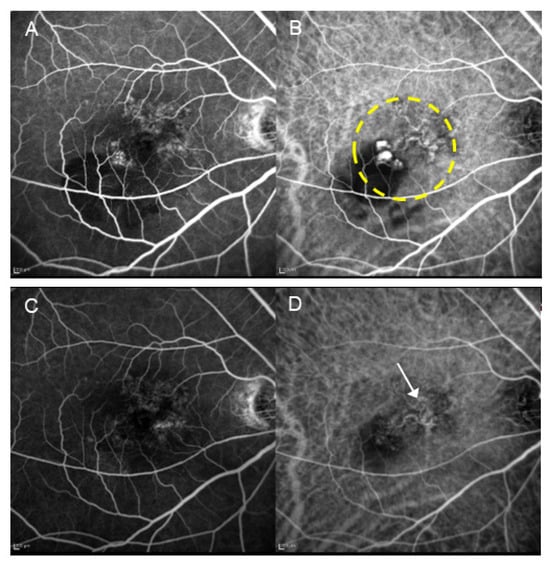 - Wada, I.; Shiose, S.; Ishikawa, K.; Kano, K.; Notomi, S.; Mori, K.; Akiyama, M.; Nakao, S.; Sonoda, K.H. One-year efficacy of “rescue photodynamic therapy” for patients with typical age-related macular degeneration, polypoidal choroidal vasculopathy, and pachychoroid neovasculopathy refractory to anti-vascular endothelial growth factor therapy. Graefes Arch. Clin. Exp. Ophthalmol. 2022, 260, 2029–2036. [Google Scholar] [CrossRef] [PubMed]