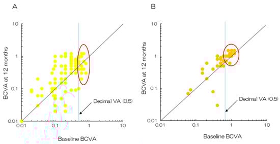 - Miyata, M.; Ooto, S.; Yamashiro, K.; Tamura, H.; Hata, M.; Ueda-Arakawa, N.; Yoshikawa, M.; Numa, S.; Tsujikawa, A. Five-year visual outcomes after anti-VEGF therapy with or without photodynamic therapy for polypoidal choroidal vasculopathy. Br. J. Ophthalmol. 2019, 103, 617–622. [Google Scholar] [CrossRef]