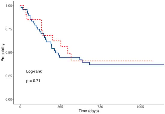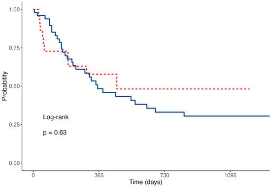 OS and RFS were similar between the G-CSF and nG-CSF groups (median OS 16.7 vs. 12.3 months, p = 0.3, Figure 1; median RFS 15.4 months vs. 11.9 months, p = 0.63, Figure 2).