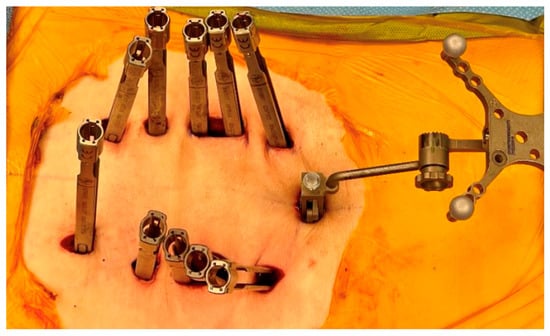 - Liu, Z.-j.; Hu, Y.-c.; Tian, W.; Jin, X.; Qi, H.-t.; Sun, Y.-x.; Jia, J. Robot-aided minimally invasive lumbopelvic fixation in treatment of traumatic spinopelvic dissociation. Orthop. Surg. 2021, 13, 563–572. [Google Scholar] [CrossRef] [PubMed]
