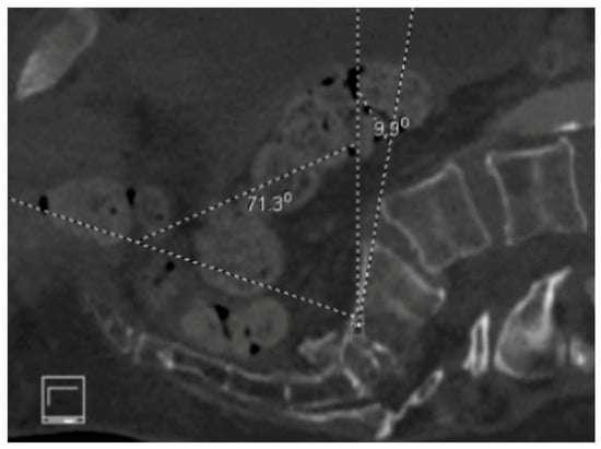Preoperative Sagittal CT scan demonstrating significant sacral kyphosis and extreme outlet angle.