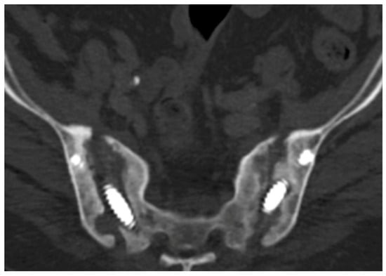 - Saiz, A.M.; Kellam, P.J.; Amin, A.; Arambula, Z.; Rashiwala, A.; Gary, L.J.; Warner, J.S.; Routt, M.; Eastman, G.J. Percutaneous sacral screw fixation alone sufficient for mildly displaced U-type sacral fractures with preserved osseous fixation pathways. Eur. J. Orthop. Surg. Traumatol. 2024, 34, 3523–3527. [Google Scholar] [CrossRef] [PubMed]