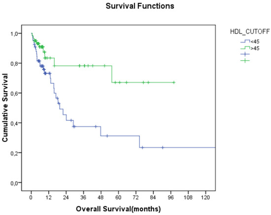 Relationship between HDL-C and overall survival (HDL-C: high-density lipoprotein cholesterol).