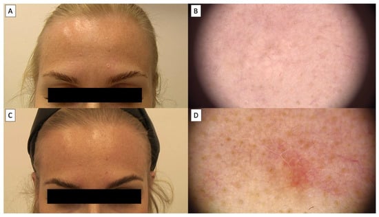- Perrett, C.M.; McGregor, J.; Barlow, R.J.; Karran, P.; Proby, C.; Harwood, C.A. Topical photodynamic therapy with methyl aminolevulinate to treat sebaceous hyperplasia in an organ transplant recipient. Arch. Dermatol. 2006, 142, 781–782. [Google Scholar] [CrossRef]