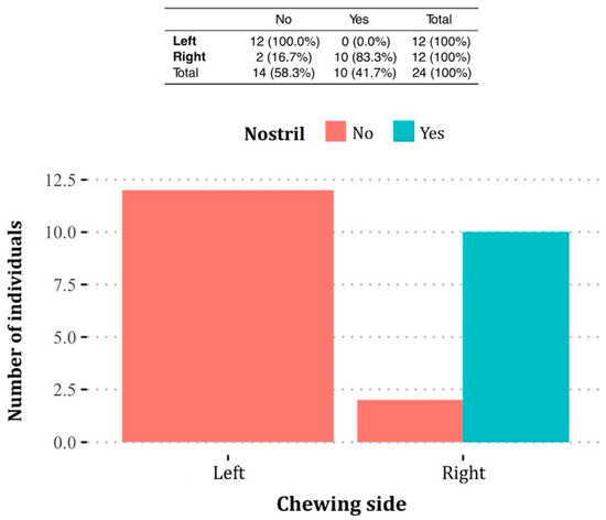 - Fisher’s exact test was used to analyze the relationship between the chewing side and the smaller nostril.