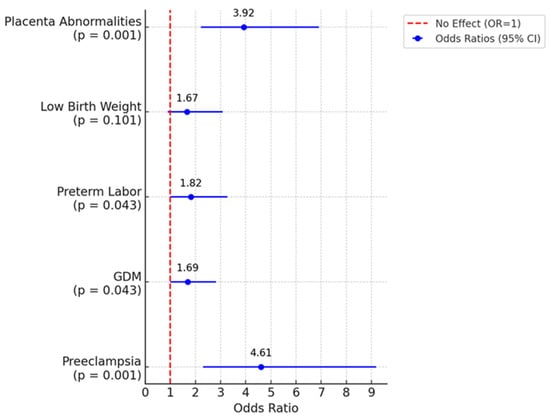 The literature suggests that LBW risk parallels the risk of preterm labor (PTL), with both increasing with maternal age [36]. In our analysis, women over 50 years of age demonstrated a 1.67-fold higher likelihood of delivering LBW infants compared to younger women. However, this association did not reach statistical significance. The observed elevated risk of LBW is likely attributable to the higher incidence of preterm labor among older women in our study.