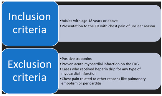 Our study did not include detailed criteria of EKG; on the other hand, according to exclusion criteria, all patients did not have EKG changes that would indicate clear evidence of acute myocardial infarction, such as ST elevation, or new left bundle branch block.