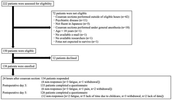 - Mazda, Y.; Ando, K.; Kato, A.; Noguchi, S.; Sugiyama, T.; Hizuka, K.; Nagai, A.; Ikeda, Y.; Sakamaki, D.; Guo, N.; et al. Postpartum recovery of nulliparous women following scheduled cesarean delivery and spontaneous vaginal delivery: A prospective observational study. AJOG Glob. Rep. 2023, 3, 100226. [Google Scholar] [CrossRef]