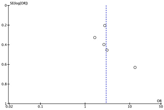 Publication bias could not be assessed quantitatively due to the low number of studies, and the funnel plot did not indicate that it was sufficient to downgrade the quality of the evidence. In fact, studies with variable sample sizes and not funded by the private sector were included in this systematic review. Consequently, the certainty of the evidence was considered low, indicating that the overall OR obtained could differ widely from the real one.
