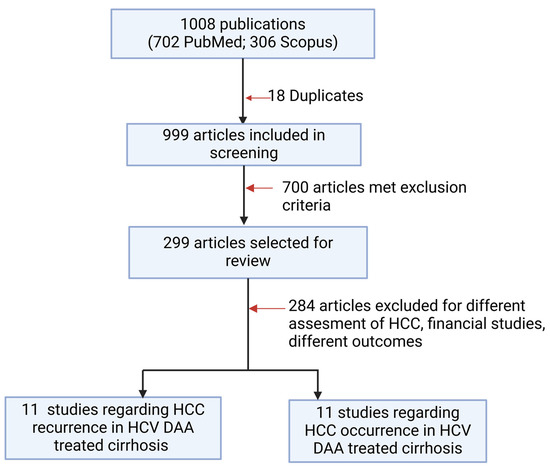 We excluded systematic reviews or other types of reviews, studies conducted on non-human populations, and studies that did not focus on DAA treatment and its association with HCC recurrence (Figure 1). This method aimed to offer a nuanced comprehension of the current literature and its relevance to clinical practice.