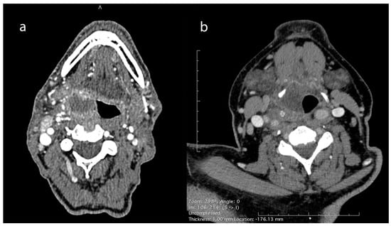 Deep neck infections (DNIs) represent a group of relatively common clinical entities but with potentially life-threatening consequences. The advent of antibiotics has led to improved infection outcomes, with wide-spectrum empirical intravenous antibiotics being initiated until culture and sensitivities are reported and targeted therapy is applied [,,]. Nevertheless, the need for potential surgical intervention always comes into consideration. Clinicians are routinely asked to make a call about surgical drainage, deciding on proper timing and surgical access, evaluating the anatomical position of a potential abscess, based on clinical findings and imaging studies.