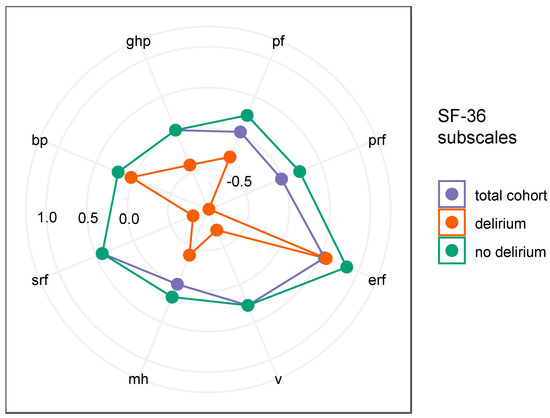 p = 0.008) in the subcategories of the SF-36 were already found preoperatively in patients with later delirium (
