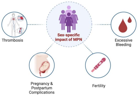 Although the standard of care for MPN remain similar across sexes, managing women with MPN poses several specific challenges unique to women’s health as shown in Figure 1.