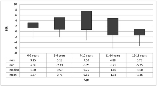 Refractive errors in age groups. Abbreviations: SER: spherical equivalent refraction.