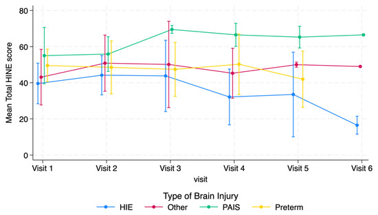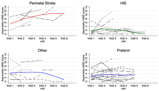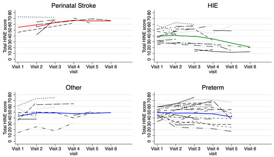 Chicago/Turabian StyleBurton, Vera Joanna, Sujatha Kannan, Srishti Jayakumar, Gwendolyn Gerner, Salome West, Gayane Yenokyan, and Andrea F. Duncan. 2025. "Longitudinal Hammersmith Infant Neurological Examination (HINE) Trajectories in Children with Cerebral Palsy Identified in High-Risk Follow-Up" Journal of Clinical Medicine 14, no. 5: 1572. https://doi.org/10.3390/jcm14051572