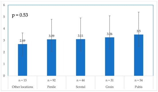 Table 2 presents the number of patients with and without a complete response for each wart location. Figure 1 shows the mean number of sessions needed in each location; there was no statistically significant difference in the number of treatment sessions needed among the different wart locations, except for the pubic area, as compared to ‘other locations’, with a p-value of 0.03.