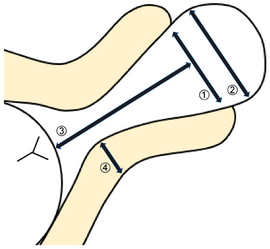 In the non-cerclage group, we examined the correlation between transvaginal ultrasound findings at the time of admission and the duration of prolonged pregnancy. Five new transvaginal ultrasound indices for this study were developed based on the Bishop score [14]: (1) width of the external os, (2) maximum width of the prolapsed fetal membrane, (3) distance from the external os to the presenting part of the fetus, (4) thickness of the posterior uterine lip, and (5) morphology of the prolapsed fetal membrane, which was classified into three categories (types A–C) (Figure 1 and Figure 2).